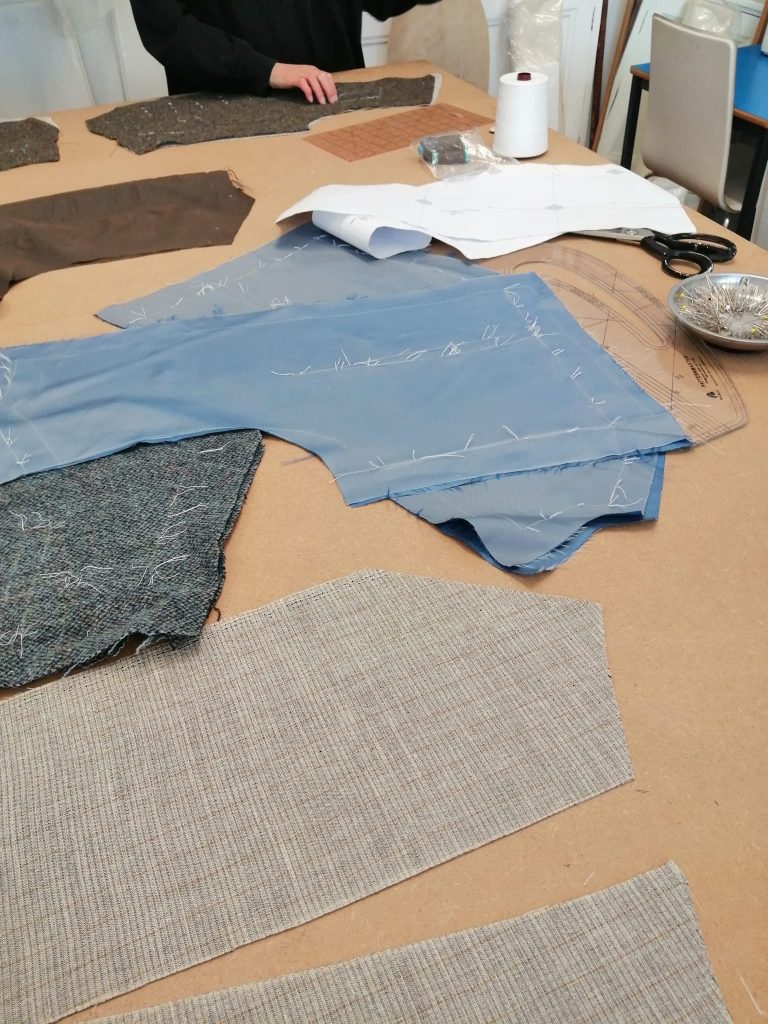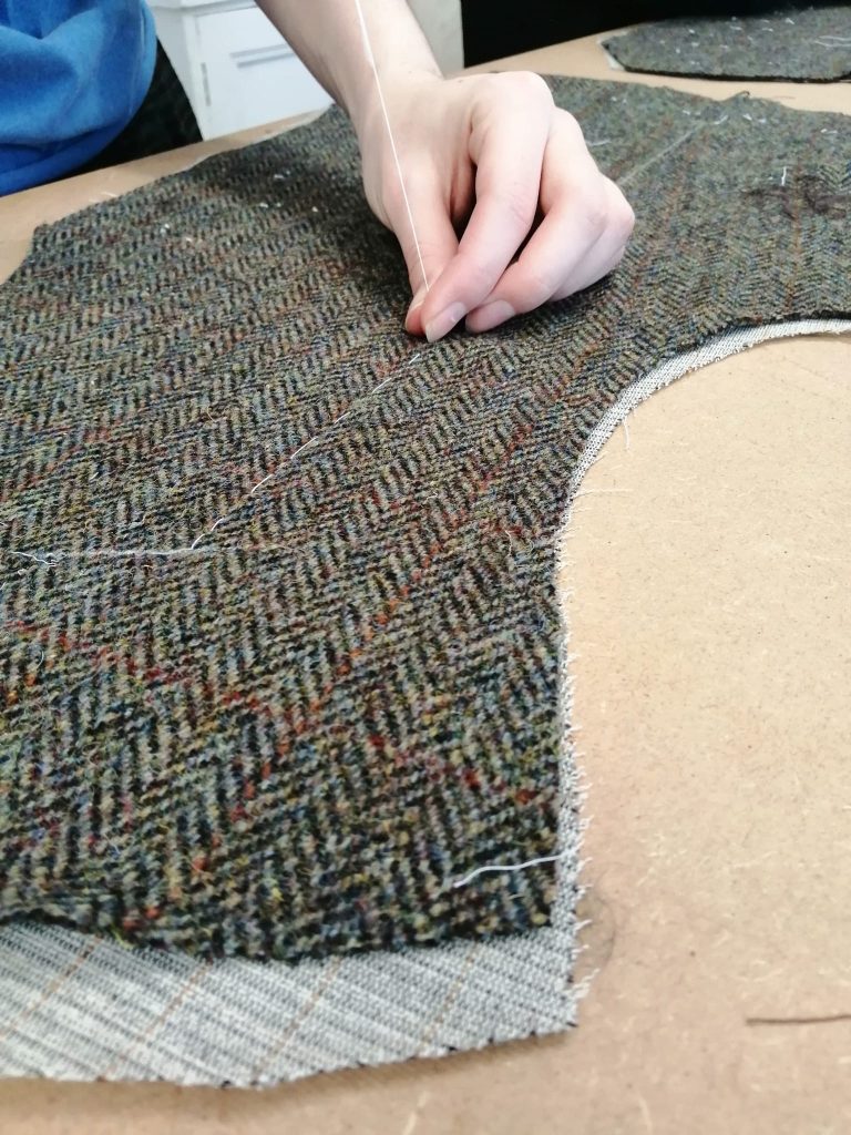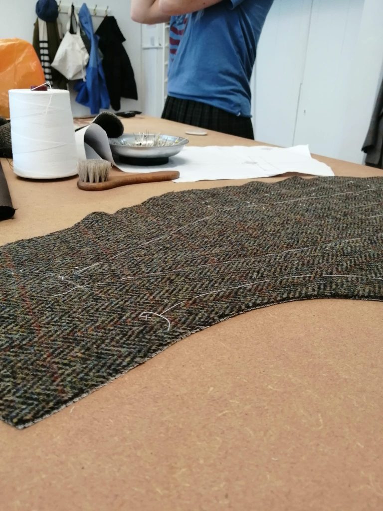 Cara and Sam are learning skills that take time to develop, from pattern drafting and cutting through to fitting and finishing, building an understanding of why garments are made the way they are and growing confidence in careful, precise tailoring done properly. They’ve also both fallen slightly in love with Poppy’s industrial sewing machine (while I remain happily old-school and firmly in the hand-sewing camp), and all three of us are united in our admiration for her amazing professional ironing station, which has very quickly become the gold standard.